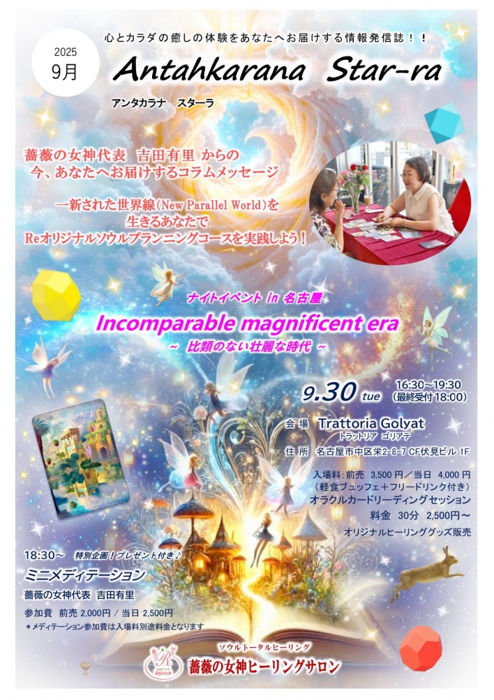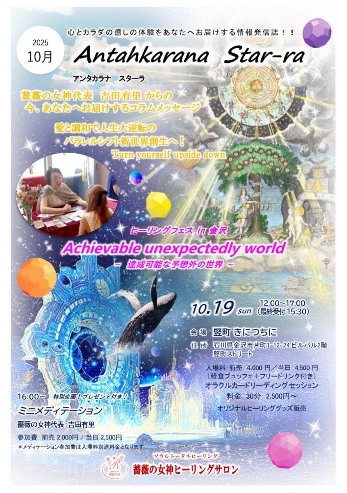 開催予定イベントのお知らせ/ヒーリングサロンワークスケジュール/オラクルカードリーディングincafeセッション出張のご案内/ヒーリングスペースのご案内 etc…最新掲載中!!